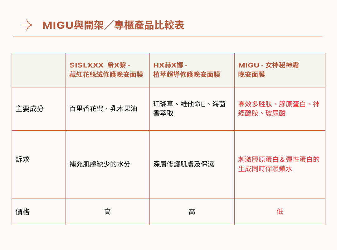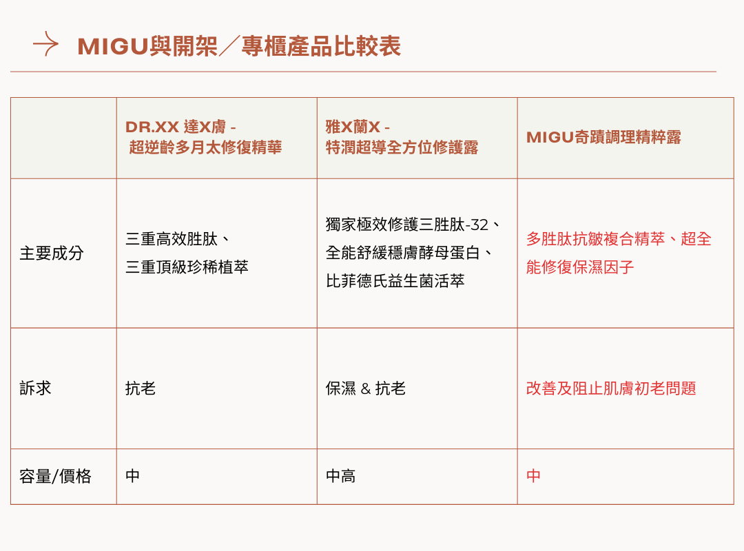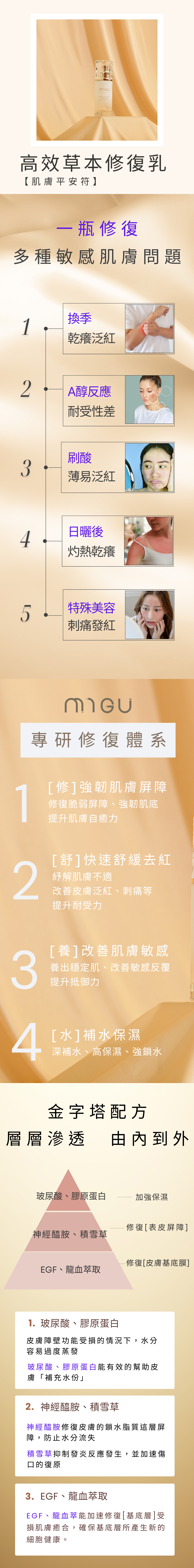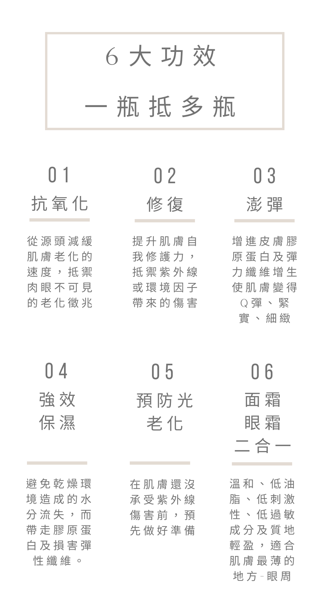 多胜肽與8倍玻尿酸結合,深層修護,抗老效果加乘,緊緻肌膚,撫平細紋。